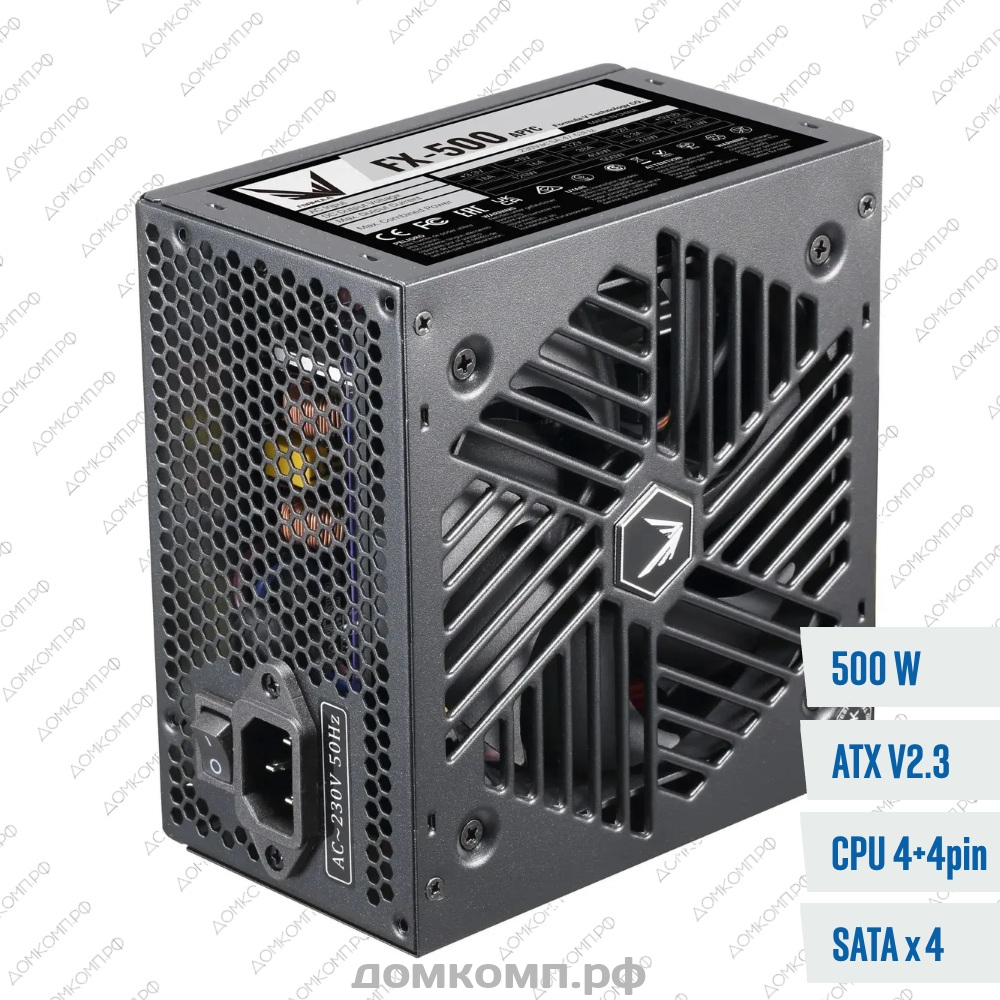 Блок питания Formula FX-500 с номинальной мощностью 500 Ватт и поддержкой стандарта ATX 12V 2.3 прекрасно подойдет для сборки самых производительных компьютеров для игр или работы. Достаточное количество разъемов для подключения нескольких мощных видеокарт, сертификация в стандарте 80+ Bronze с КПД не менее 85%, запас мощности на случай непредвиденных ситуаций и невысокая шумность характеризуют это устройство как универсальное - он может использоваться как источник питания графической станции или системника для самых требовательных игр. Новая активная система PFC помогает справляться с нестабильной нагрузкой и увеличивает срок беспрерывной работы блока во время всего периода эксплуатации, что дает возможность использования как БП небольших серверов баз данных. Устройство имеет все необходимое для подключения многочисленной периферии, в наличии 4 разъема SATA и 3 разъема molex. Отличительной особенностью является подсветка RGB вентилятора. Элементная база устройства подготовлена для работы самых сложных условиях эксплуатации при повышенной температуре, для улучшения надежности функционирования установлен вентилятор размером 120 миллиметров нового типа, который обеспечивает должную терморегуляцию системы и при этом регулирует обороты автоматически. Срок эксплуатации составит не менее 5 лет благодаря наличию полного набора сертификаций и лучшего контроля на всех этапах производства.