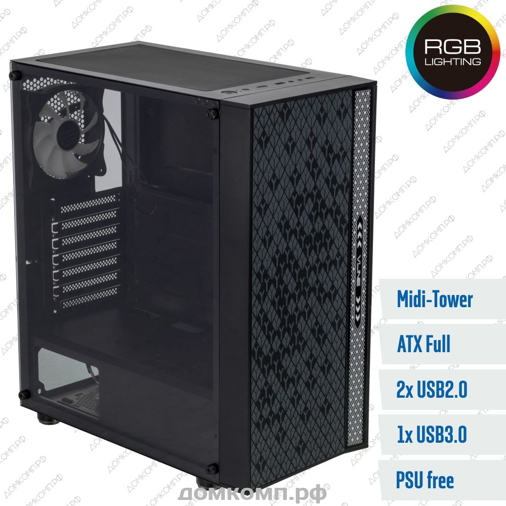 Корпус Formula V-LINE 2056B черного цвета представлен в современном дизайне, на основании отзывов профессиональных игроков Полноформатное смотровое окно на боковой панели дополнено вентилятором с подсветкой RGB, выгодно подчеркивающей хорошую проработанную внутреннюю компоновку. Выступая одним из лучших вариантов при сборке игрового ПК средней или максимальной комплектации, данный поддерживает установку самых больших радиаторов для процессора высотой до 160 мм или видеокарт общей длиной до 345 мм. Универсальность применения отражена в полной совместимости по креплениям с материнскими платами форм-факторов ATX, MicroATX и ITX. Крупнейший мировой производитель компания Формула традиционно заботится об удобстве сборки - и это одно из важнейших преимущество всей предлагаемой линейки корпусов, поэтому Вы получаете удобный съемный лоток для жестких дисков, специальный закрытый коридор для установки блоков питания и расширенные возможности скрытой укладки проводов. Высокие ножки помогают улучшить охлаждение всех компонентов мощнейших игровых компьютеров, собираемых на основе этого высокотехнологичного устройства. Источник питания в комплектацию корпуса не входит для Вашего удобства, теперь вы сможете самостоятельно подобрать блок питания, исходя из суммарного потребления компонентов собираемого компьютера.