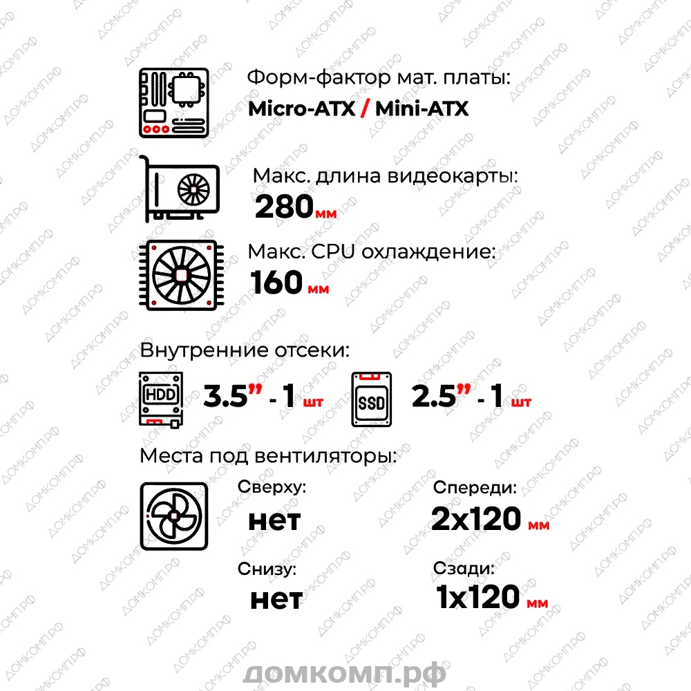· возможность установки СВО с двумя вентиляторами 120 мм на передней панели;