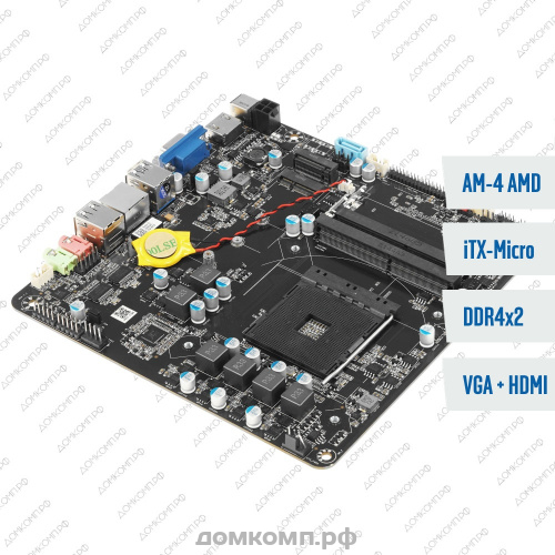 - гнездо процессора от AM4, совместимое с процессорами AMD 3 и 4 поколений с TDP до 65 Вт;