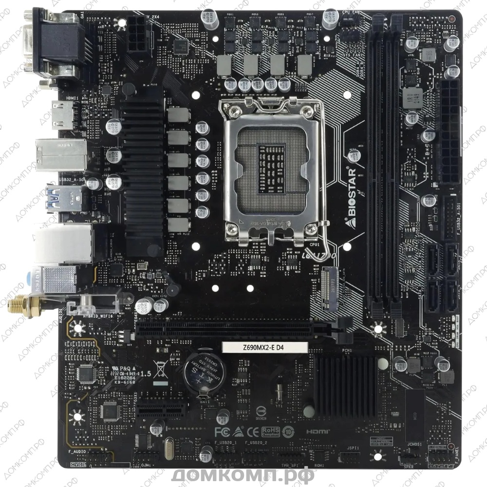 Материнская плата BiostarZ690MX2-E D4 включает в себя все необходимое для работы на компьютере. Контроллеры от Realtek делают устройство надежным, также установлен стандартный порт 2.5G Ethernet. Уникальным преимуществом является радиатор увеличенного размера на системе питания VRM. Данная материнская плата находится в доступном ценовом сегменте и проста в установке и эксплуатации. Неплохой вариант для создания бюджетной игровой станции, прекрасно пойдут любые процессоры до Intel Core i5 14600K, поддержка Intel® Extreme Memory Profile (XMP) до 4400 МГц и производительных видеокарт помогут не оплошать в боях на картах PUBG и насладиться просторами Skyrim. Подсистема питания процессора с 10 фазами и твердотельными конденсаторами обеспечит стабильное напряжение и высокую мощность Вашему процессору, для предотвращения сбоев и глюков.
