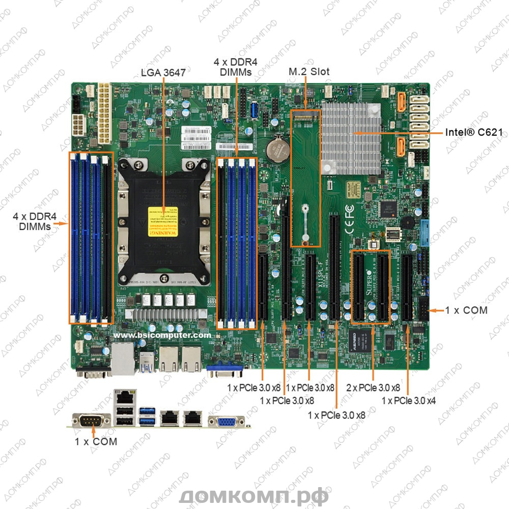 Надежная пяти-фазная схема питания изготовлена на основе военных конденсаторов и оборудована мощным радиатором для быстрого отвода тепла, что предоставляет повышенные гарантии надежности и длительных сроков эксплуатации. Полная поддержка памяти формата RDIMM / RLDIMM позволяет использовать память для серверов, увеличивая стабильность системы. Устройство достаточно универсально, имея на борту дополнительно 8разъемов SATA и увеличенное количество разъемов PCIe 3.0 x16 для лучшей производительности. Базы данных получат лучшую скорость обработки при создании RAID-массива на основе 4 или 8 SSD накопителей и установке 256 Гб оперативной памяти. Эта материнская плата оптимально подходит для сборки высоко-нагруженных систем виртуализации, баз данных и других приложений требующих высокого быстродействия. Наличие четырех гигабитных портов позволяет использовать платформу в качестве высокоскоростного NAS и обеспечить сетевой доступ на высоких скоростях десяткам пользователей. Производителем обеспечена полная совместимость с серверными операционными системами семейств Linux и Windows.