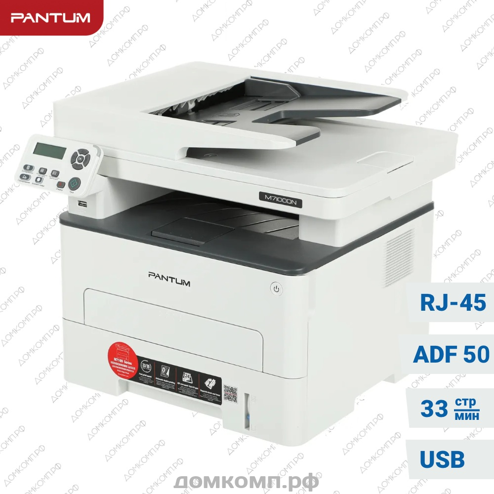 МФУ Pantum M7100DN это отличный вариант качественного многофункционального оборудования по низкой цене. Устройство позволяет выполнять копирование, сканирование и печать документов в высоком качестве. Несомненным плюсом выступает совместимость с операционными системами Windows, Linux, Mac OS, что делает возможным использование лазерного принтера с различными компьютерами это важный плюс при работе в офисе. Встроенный сервер сетевой печати позволяет удобно распределять документы от нескольких пользователей. В наличии сетевой разъем RJ-45 для быстрой интеграции устройства в сеть предприятия.