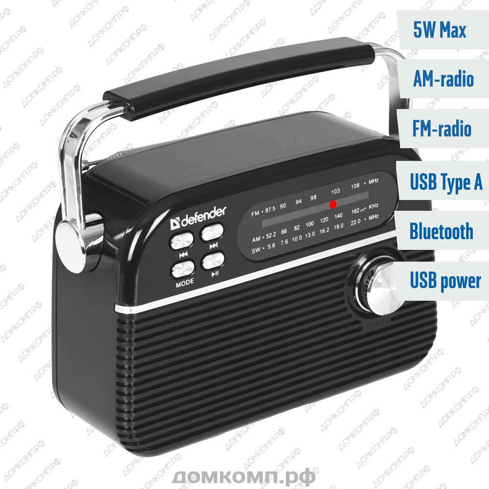 Представляем новую модель портативного радио-приемника - переносная звуковая система Дефендер Вега цвет черный, выполненная в стиле старых приемников. Переносной аналоговый радиоприемничек имеет стильную и удобную конструкцию, несмотря на свою компактность, способен обеспечить действительно хороший, полноценный во всех музыкальных диапазонах звук. Важной характеристикой этого обычного приемничка выступает высокая функциональная универсальность - кроме обычного питания от сети - имеется отсек для батареек, а также сменный аккумулятор 1200 мАч для бесперебойной работы в течение от 10 до 25 часов. Управление осуществляется большими регуляторами и тумблерами на корпусе. Аналоговый радиоприемник одинаково удобно использовать как дома или в офисе, так и по дороге на отдых - небольшой вес и мощная встроенная батарея гарантируют хорошую музыку и новости в удобном месте. Оборудован крепкой ручкой для переноски.