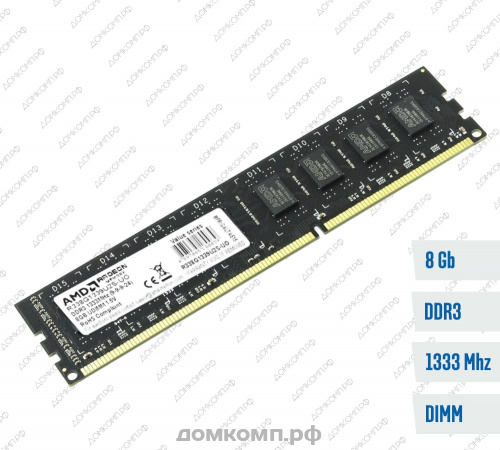 Память DDR3 8 Gb AMD (R338G1339U2S-U) это удобная и недорогая составляющая компьютера, которую вы можете приобрести в нашем магазине. Объем в 8192 Мб позволит вам дополнить оснащение вашего системного блока. Даже в качестве единственной «полоски» памяти, это изделие обеспечит необходимую оперативность процессов, будь это работа в 1С, Google и Яндекс, Outlook или Битрикс. Объема памяти этого модуля будет достаточно для комфортной игры в GTAV или PUBG. Важной особенностью является отсутствие привязки к определенному производителю — Intel или AMD.