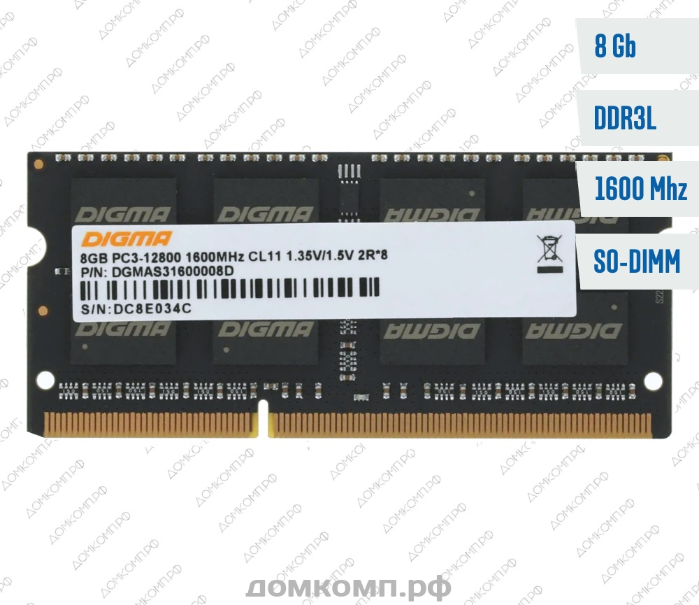 Ноутбучный модуль памяти 8 Гб Digma DDR3/DDR3L это: