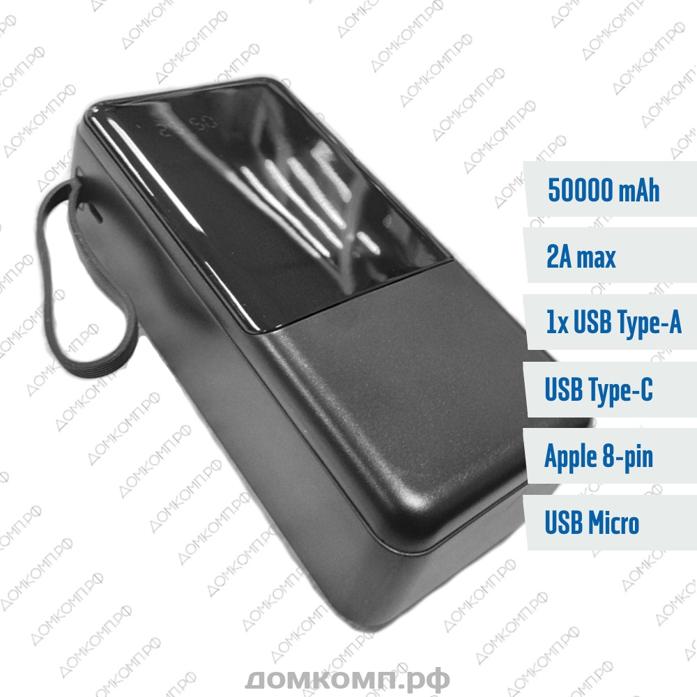 Внешний аккумулятор BAM-50 Повер банк на 50 000 мАч легко взять с собой в поездку или на природу, чтобы всегда оставаться на связи. Благодаря наличию двух выходов Type-A можно использовать все стандартные кабели Lightning, microUSB, Type-A и Type-C. На корпусе есть информативный индикатор, который информирует о процессе зарядки и уровне ёмкости аккумулятора. Портативное зарядное устройство представляет собой компактный внешний аккумулятор, с помощью которого в любой момент можно подзарядить смартфон или планшет. В него встроена надежная литий-полимерная батарея емкостью до 185 WH, которая хорошо держат заряд и долго не требует подзарядки, гарантируя надежную работу подключенных устройств даже при активном использовании. Важное преимущество внешней батареи для телефонов - аппарат может автоматически выбрать наиболее подходящий режим заряда вашего устройства для оптимальной скорости подзарядки, при этом поддерживаются устройства, требующие различной мощности питания- от 1А до 2А. Укрепленный корпус из противоударного материала может выдержать небольшие удары, защищен от неблагоприятного воздействия воды и влажности, а также огнестоек.