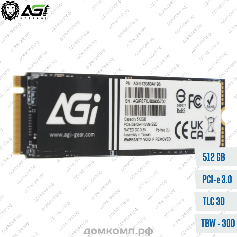 Накопитель M.2 512Гб AGi AI198 это ультрасовременное решение для вашего компьютера на замену устаревшему HDD. Крупнейший производитель устройств хранения АГИ снабдил устройство объемом памяти в 512 гигабайт в формате PCI-E 3.0 x4 и современным контроллером, что является довольно неплохим предложением на рынке по такой цене. Мгновенная скорость работы гарантируется — можно забыть про медленную загрузку или сбои в системе. Игры бегают быстрее, работа становится на порядок эффективнее. Это лучший выбор для геймеров, дизайнеров и продвинутых пользователей. Операционная система обретает новое дыхание и поражает вас скоростью загрузки программ. Установив такой диск в игровой компьютер или ноутбук, вы наглядно убедитесь что производительность выросла на порядок, обгоняя более дорогие модели. Устройство обладает высокой универсальностью, ведь каждый современный компьютер имеет как минимум один подходящий разъем для подключения этого высокотехнологичного жесткого диска. Установлены оригинальные чипы TLC 3D от Intel, Micron или YMTC.